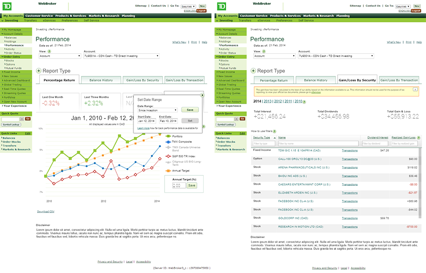 Architecture, designs and prototypes for responsive, mobile, tablet and desktop web applications for TD Bank, TD Canada Trust, TD Waterhouse, TD Insurance on agile and waterfall projects.