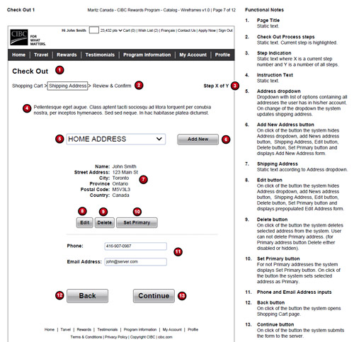 Together with Maritz team we created documentation and wireframes for CIBC Rewards program. Essentially it's an e-com site with registration, account management and check out process. There're different types of users with set of functionality. Wireframes reflected desktop and mobile access.